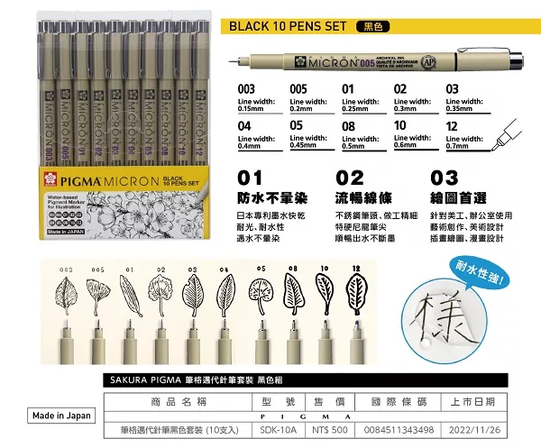 • 商品名稱 : 日本SAKURA櫻花 筆格邁 黑色代針筆組10支入